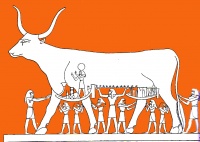 ნუთი დიდი, მიწაზე გადმომხობილი ფურის სახით არის წარმოდგენილი, ვარსკვლავები ღამით მის მუცელზე მოძრაობენ, დღისით კი მის მუცელში არიან, რადგან დილით ყლაპავს მათ. ამან გააჯავრა მისი მეუღლე გები, ამიტომაც შუმ, როგორც ჰაერის სივრცემ, განაშორა მეუღლეები ერთმანეთისგან.