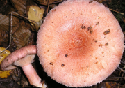 ფეხზე მიზრდილი ან მასზე დაღმავალი ფირფიტები მოთეთრო ან მოყვითალო-მოვარდისფროა..