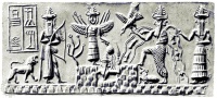 [[ფაილი:Utu.jpg|thumb|200პქ|'''უთუ''' – მზის ღმერთი ამოდის ორ მთას შორის]]