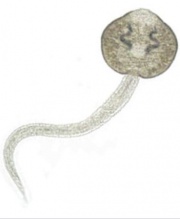 | − | '''ცერკარია''' – (cercariae; ბერძნ. kerkos კუდი), [[ტრემატოდები|ტრემატოდების]] განვითარების [[ლარვა|ლარვული]] ფორმა. ვითარდება შუალედური [[მასპინძელი (პარაზიტოლოგია)|მასპინძლის]] – [[მოლუსკები|მოლუსკის]] სხეულში [[სპოროცისტა|სპოროცისტისა]] და [[რედია|რედიებისაგან]]. ცერკარიას გააჩნია საკუთრივ სხეული და კუდი. | + | [[ფაილი:Carkaria.JPG|thumb|წცერკარია]] |