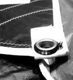 მრგვალი, ლითონის კოუშიანი ნახვრეტი იალქანში, ტენტში ან შალითაში.
