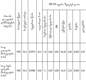 აქვე მოგვყავს დამზადებული ღვინის ნიმუშების ქიმიური ანალიზის შედეგები (იხ. ცხრ. 6). | აქვე მოგვყავს დამზადებული ღვინის ნიმუშების ქიმიური ანალიზის შედეგები (იხ. ცხრ. 6). | ||