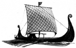 ვიკინგების იალქნიან-ნიჩბიანი უგემბანო სამხედრო გემი VIII–X საუკუნეებში.