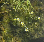 წყლის ბაია – (Ranunculus trichophyllus Chaix ex Vill); ოჯახი: ბაიასებრნი (Ranunculaceae). მრავალწლიანი ბალახოვანი მცენარეა, მწვანეა, შიშველი. ფოთოლი უხეშია, ნახევრად მრგვალი ფორმის, სამმაგად დანაკვთული წვრილ, არათანაბარ ნაწილებად. ყვავილის ყუნწი სხვადასხვა ზომისაა. გვირგვინი თეთრია, ძირში ყვითელი ლაქით. ყვ. ნაყ. IV-VIII. მცენარე იზრდება მთისწინეთებიდან ტყის ზედა სარტყლამდე – მდგარ და მდორე წყლებში. კახეთში მისი ნახვა შესაძლებელია სოფელ თეთრწყლების მიდამოებში. გავრცელებულია მთელ საქართველოში.