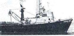 თევზსაჭერი გემი, რომელიც თევზს ქისისებრი ბადით იჭერს.